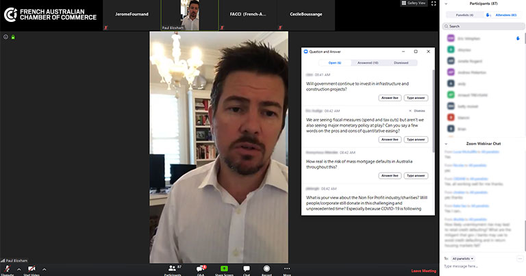 Paul Bloxham, chief economist at HSBC Australia and New Zealand, presented an overview of Australia’s economic situation and the impacts of COVID-19. He covered various subjects such as policy makers’ response and markets’ reaction to this unprecedented crisis.