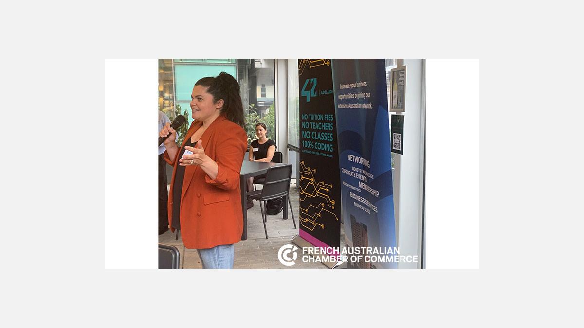 We would like to warmly thank our sponsor for the night, 42 Adelaide, an innovative free software engineering school founded in Paris, which has a new campus on Pitt Street in the city. Louise Vidal gave an informative presentation about how 42 Adelaide is transforming higher education by creating accessible learning opportunities and teaching fundamental skills to be successful in the digital workforce.