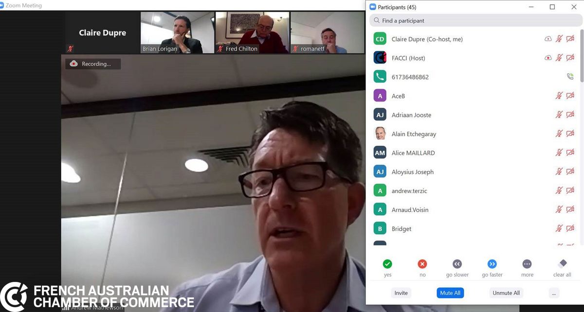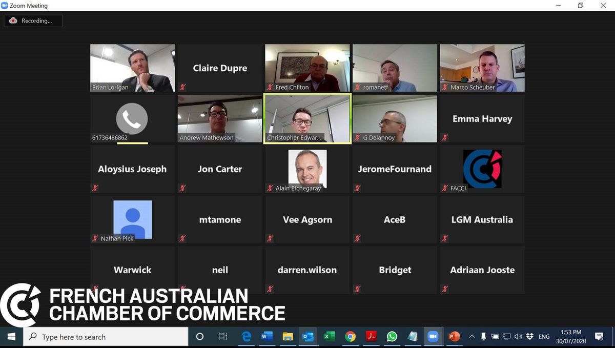 The objective of this video conference was to assess the short, mid and long-term impact of COVID not only on Airbus and Thales' operations, but also on their supply chain strategy. In a time of heightened social and international tensions, we also discussed the long-lasting impact of COVID-19 on the shape of Defence Policy and Business in Australia.
