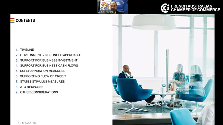 Guests had the opportunity to listen to Jamie Towers, Tax Partner at Mazars Australia, share his expertise on the measures implemented by the Australian Government to support SMEs in this period of economic uncertainty.